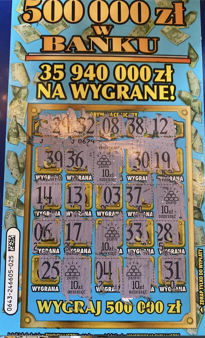 Wreszcie dobre podejście do tej zdrapki, pierwsze podejście na początku było zerowe teraz drugie i kupione dwie sztuki co razem dało 60 teraz muszę szukać znaku banku