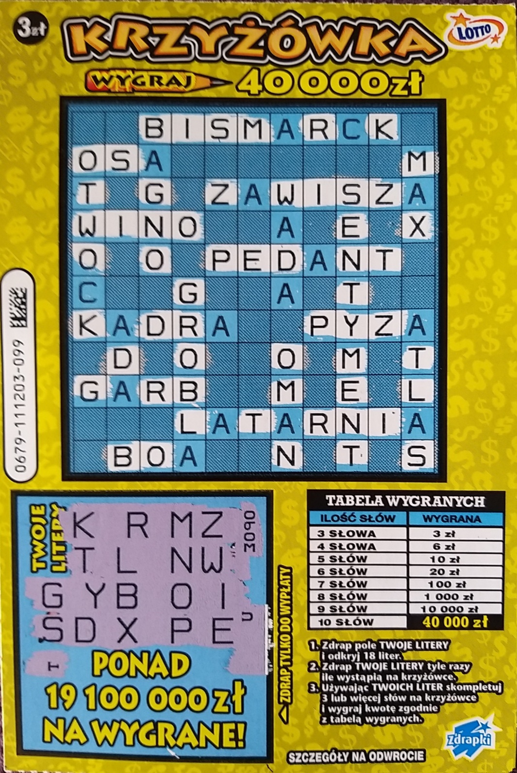 Wczoraj kupiłem 6 krzyżówek (5 żółtych i 1 niebieska). Wydrapałem 2x20zł