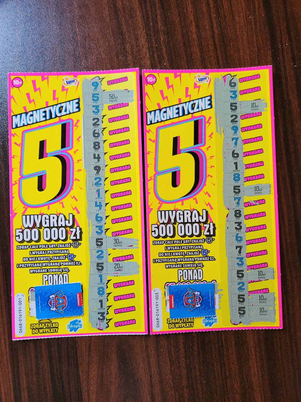 U mnie z 5 zdrapek 3 puste, jedna 150 i jedna 50, całkiem przyjemnie