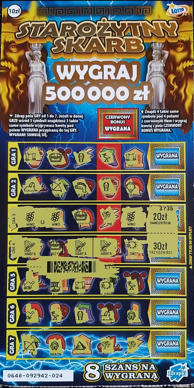 Ciesz się ze nie było zwrotu 90, który jest standardowo w tej zdrapce, 50 jest losowe