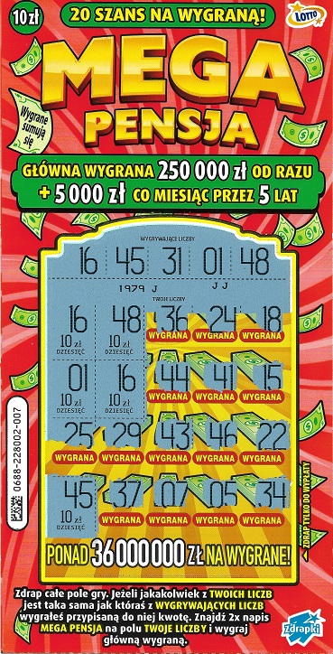 Kupiłem 2 sztuki, numerki wybierałem sam i tak: 025-pustak, 007-50zł