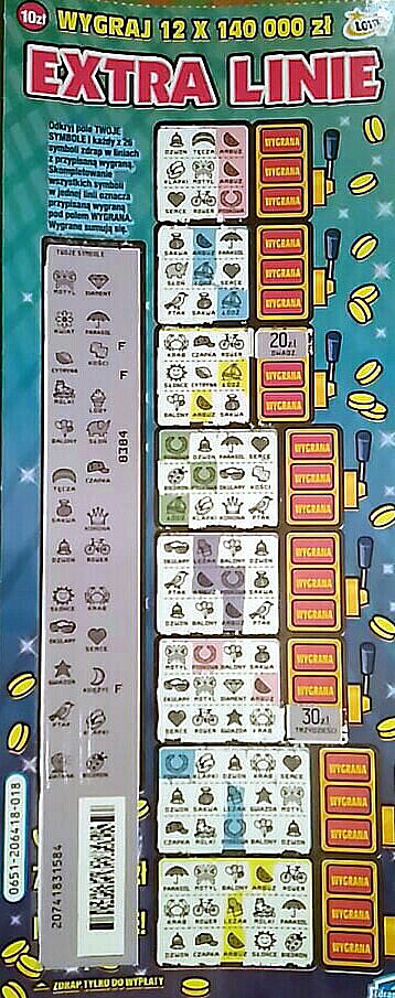 Pierwszy ram miałam taką linię, która ułożyła się po zdrapaniu trzech symboli. Liczyłam na dużo więcej ale ostatecznie była tylko ta jedna, pod którą było 30zł. Mieliście kiedyś taką zdrapkę?