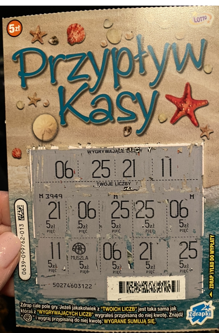 2x0 i 1x5 dziwna ta zdrapka w dotyku taka nietypowa tektura. A w punktach lotto dobrze się drapie tylną częścią ołówka