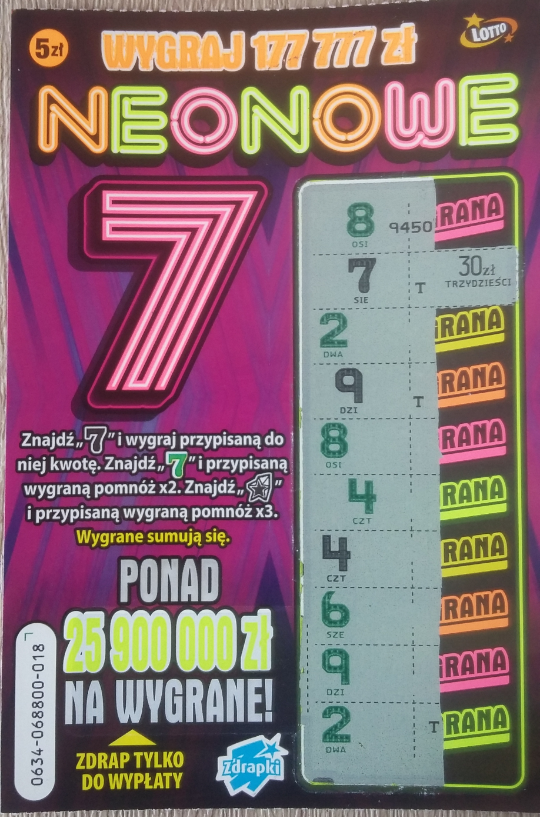 Ja tej zdrapki nie widuję już od ładnych paru miesięcy! Raz się pokazały jakoś na początku grudnia w kilku punktach i z miejsca się sprzedały. W lutym kończy się 5 zdrapek i wszystkie mają jeszcze jakieś główne do wydrapania i wszystkie są atrakcyjne. Nie wiadomo na czym się skupić