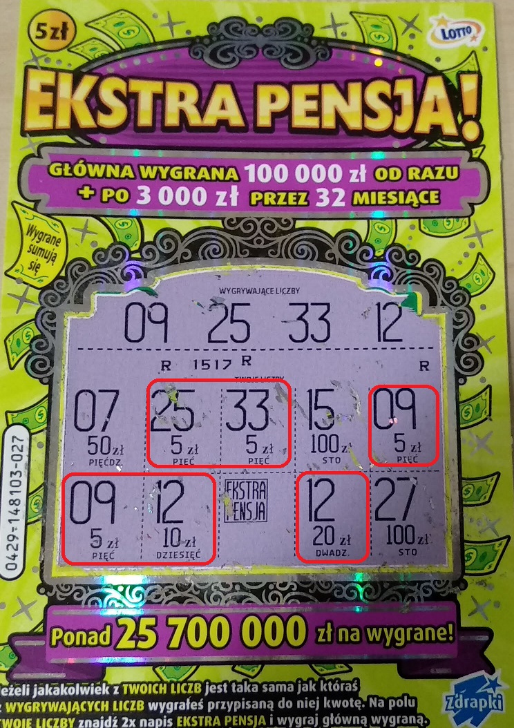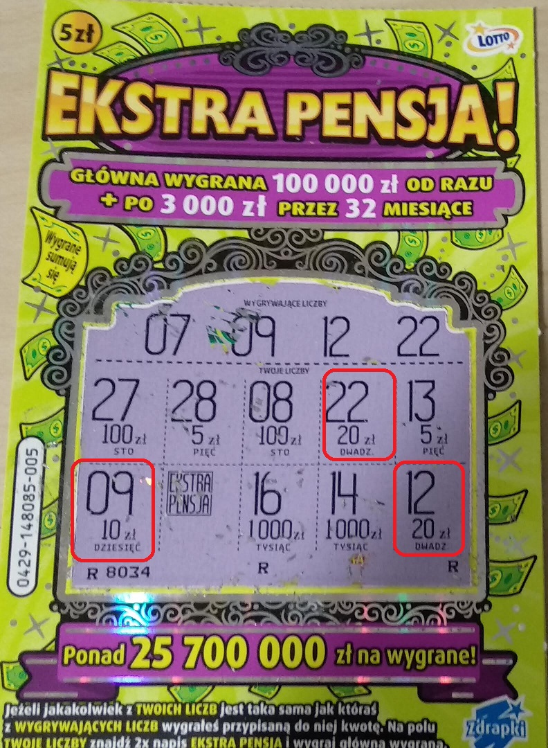Ostatecznie kupione 13 zdrapek.