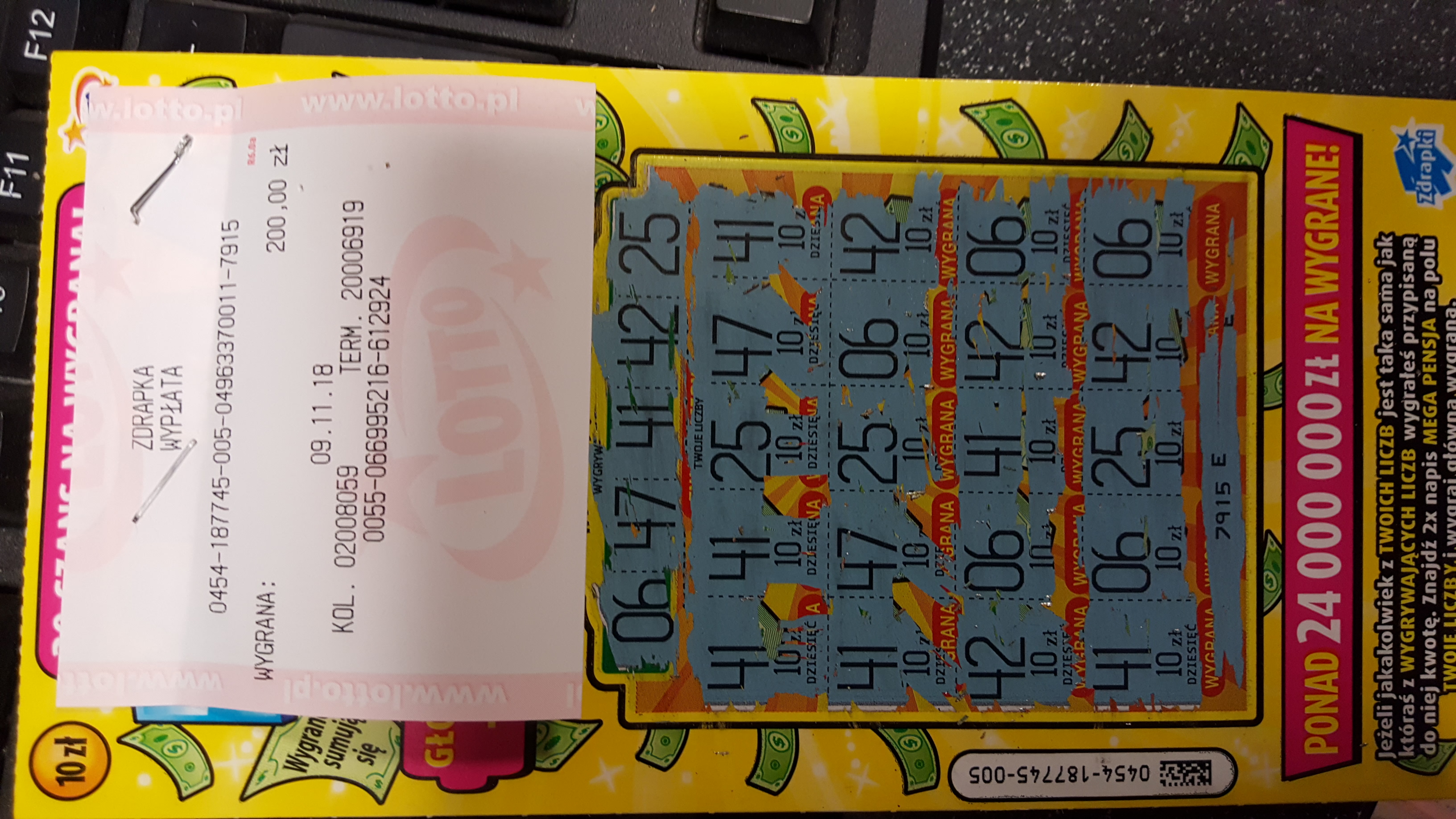 Dziś kolejna dyszka ze zdrapkomatu w nr 012