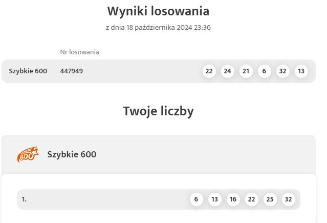 Nie, któregoś dnia premia wynosiła lekko ponad 11k i przypadła na 2 stopień wygranej i wtedy trafiły 2 osoby + 250zł za 5/6Krzysiek pisze: ↑21 lis 2024, 19:50W małym miasteczku obok mojej miejscowości zamieszkania będąc dzisiaj w kolekturze zauważyłem plakat z informacją o wygranej w Sz600 w kwocie 5,850zł