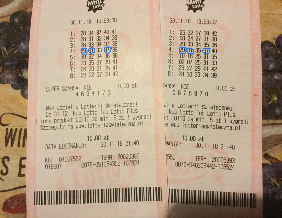 U mnie w końcu trójka z obokiem do czwórki... fotki mi się nawet nie chce robić i wstawiać bo wygrana to ledwo 18 zł... 8-)