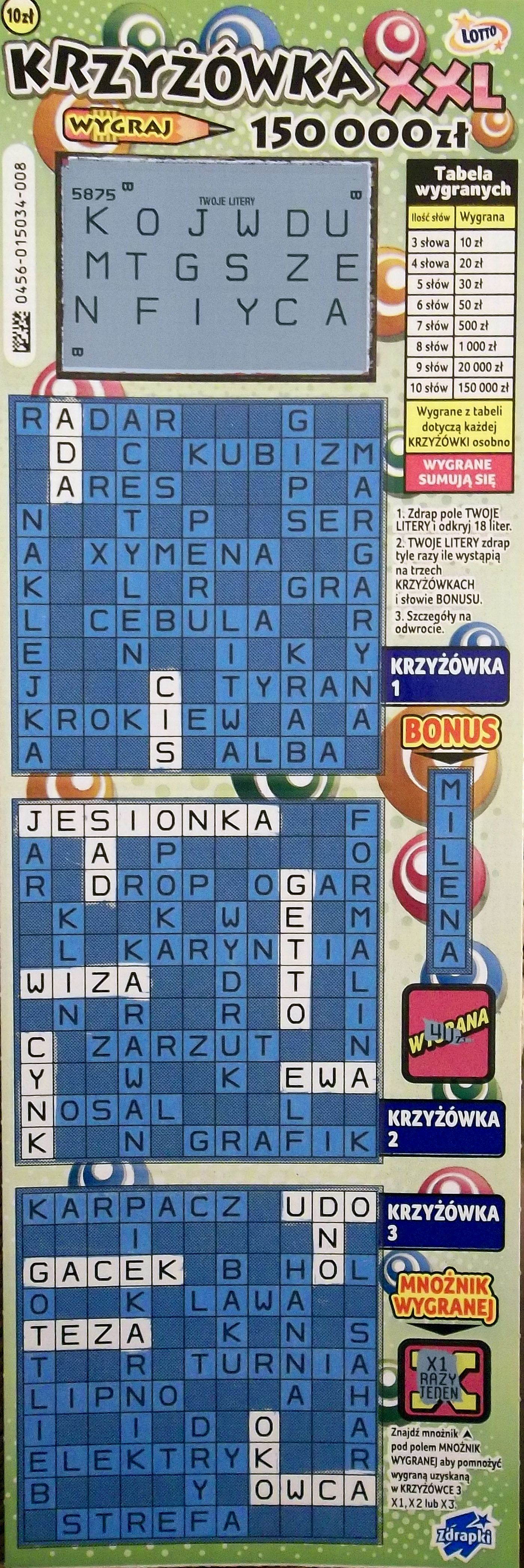 Wieczorkiem ostatnia sztuka z nr 025 ze szczęśliwego zdrapkomatu i 40 zł w ostatniej krzyżówce (bonus x2)