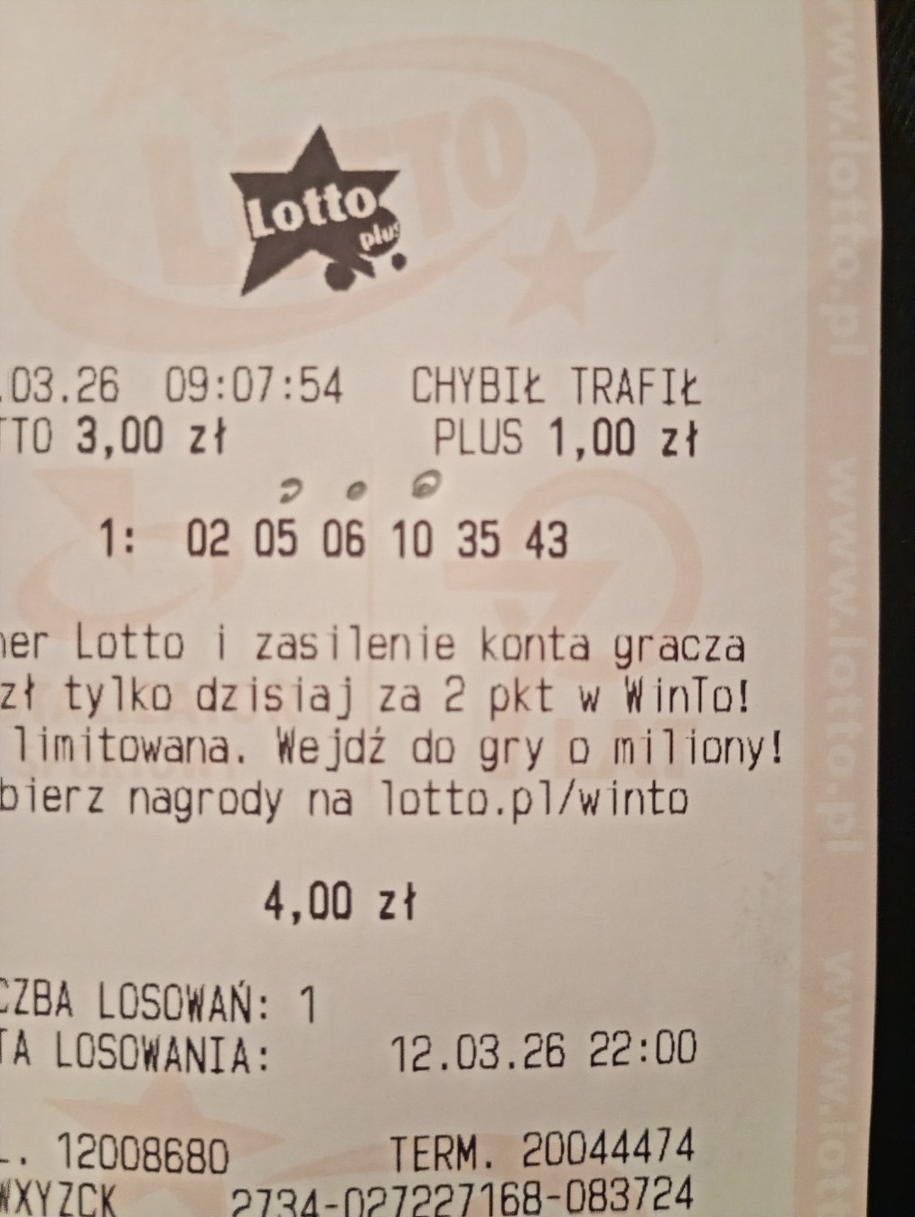 Nosz k.... jprd przecież to zakrawa na .....czyste........mzielakzielakm pisze: 08 mar 2026, 16:51 No ja podskoczyłem i byłem jednym z ponad 5 tysięcy graczy , którzy trafili czwórkę za 80 ziko
