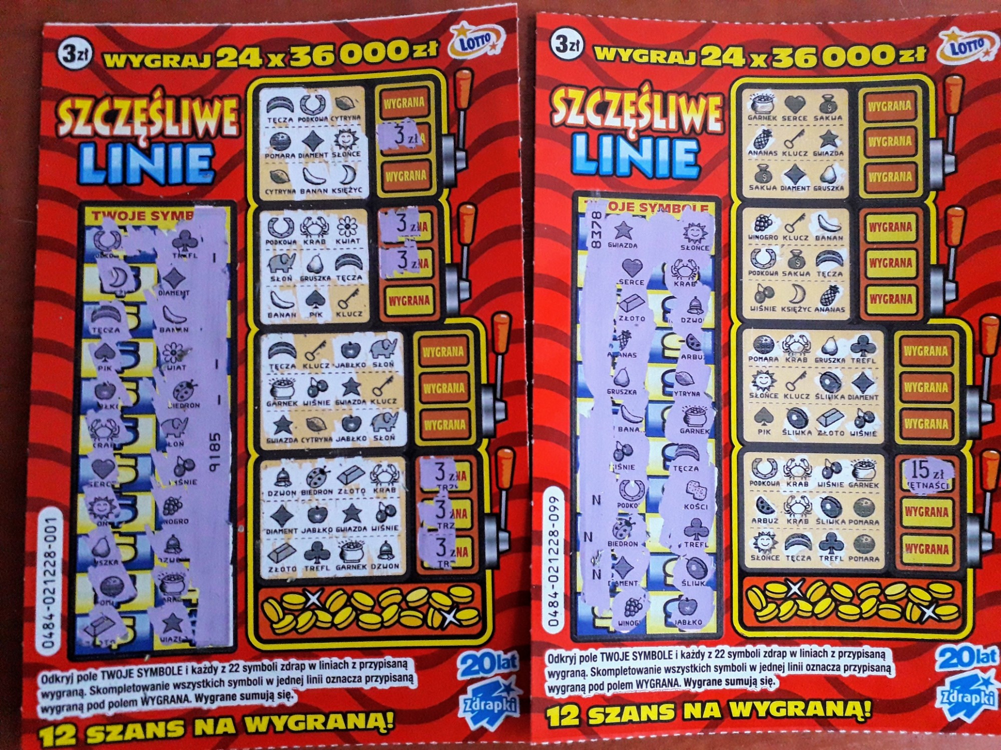 Bardzo lubię te zdrapkę, wiec wziąłem dzisiaj dwie fioletowe (084, 094) i w każdej zwrot