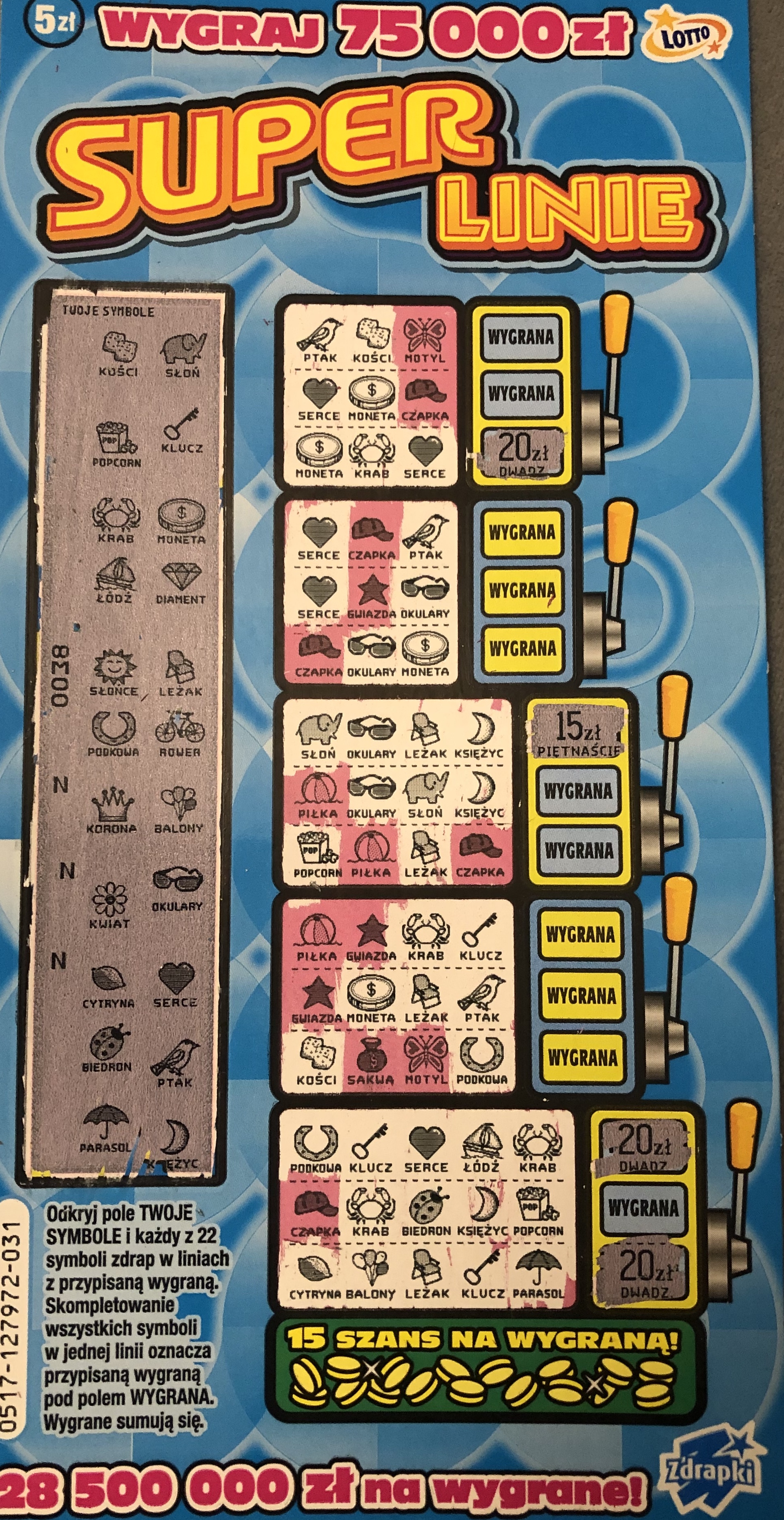 Jedna z najfajniejszych zdrapek, kolorek dobry, drapanie niezmiennie przyjemne. Brawo tym, co coś trafili. Na 3 sztuki dwie puste i jeden zwrot, ale na pewno będę skubał.