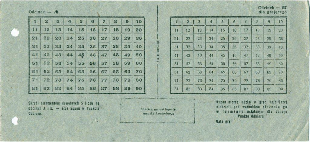 Poniżej fragment kuponu z pierwszego losowania z 1957 roku.