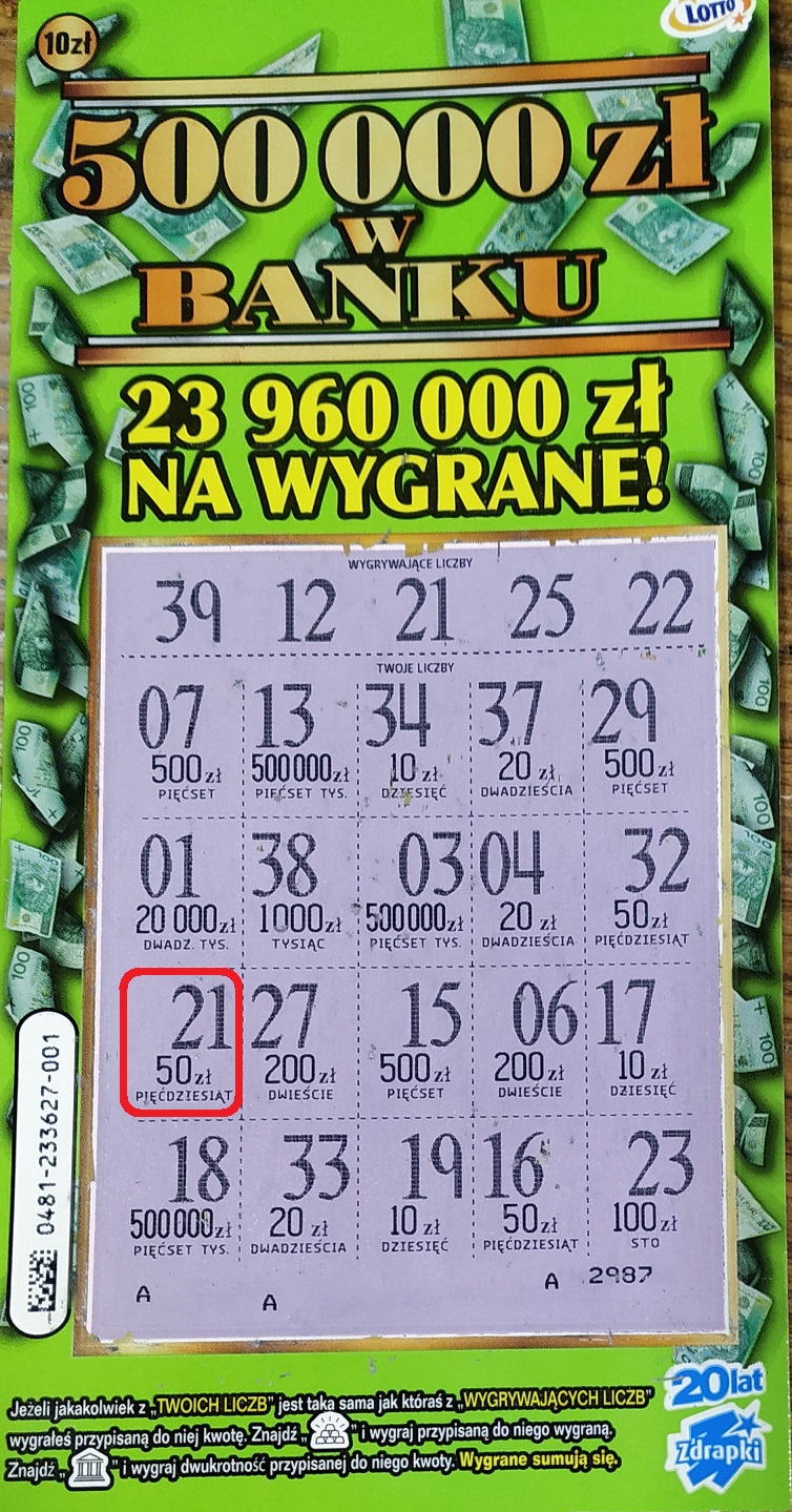 Witajcie. Mam pytanko. Czy uda mi się wypłacić zwrot z tej zdrapki jeśli została ona podarta na pół? Numery i kod kreskowy są w całości...