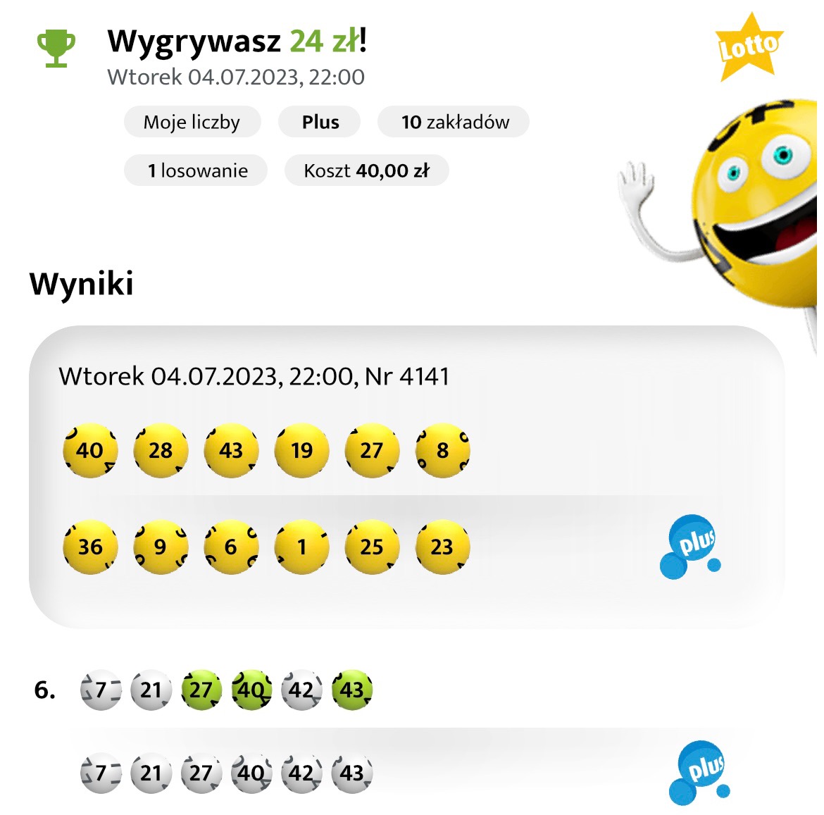 https://forumlotek.pl/viewtopic.php?f=20&t=787rusalkq pisze: 11 lip 2023, 14:27 Czy jest jakaś promocja może? Puściłam 4 zakłady na swoje liczby w jednej kolekturze i nic a w drugiej tylko 2 na dużego lotka i pani mówi że mam gratis ekspres losa za 2 zł
