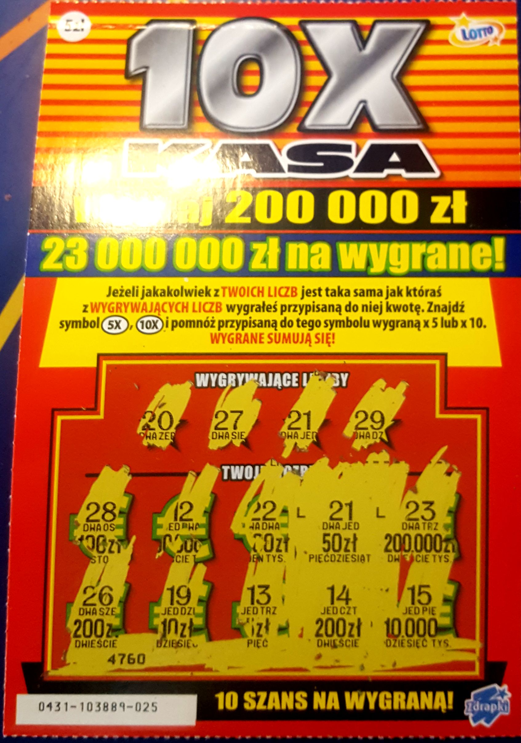 Ja dzisiaj kupiłem w różnych punktach 4 sztuki dla sprawdzenia przedziału, ale wszystkie poza ciekawą skalą. Na szczęście 2 były pełne, wpadło 5 zł i 10 zł więc tylko 5 zł w plecy przez to sprawdzanie :p