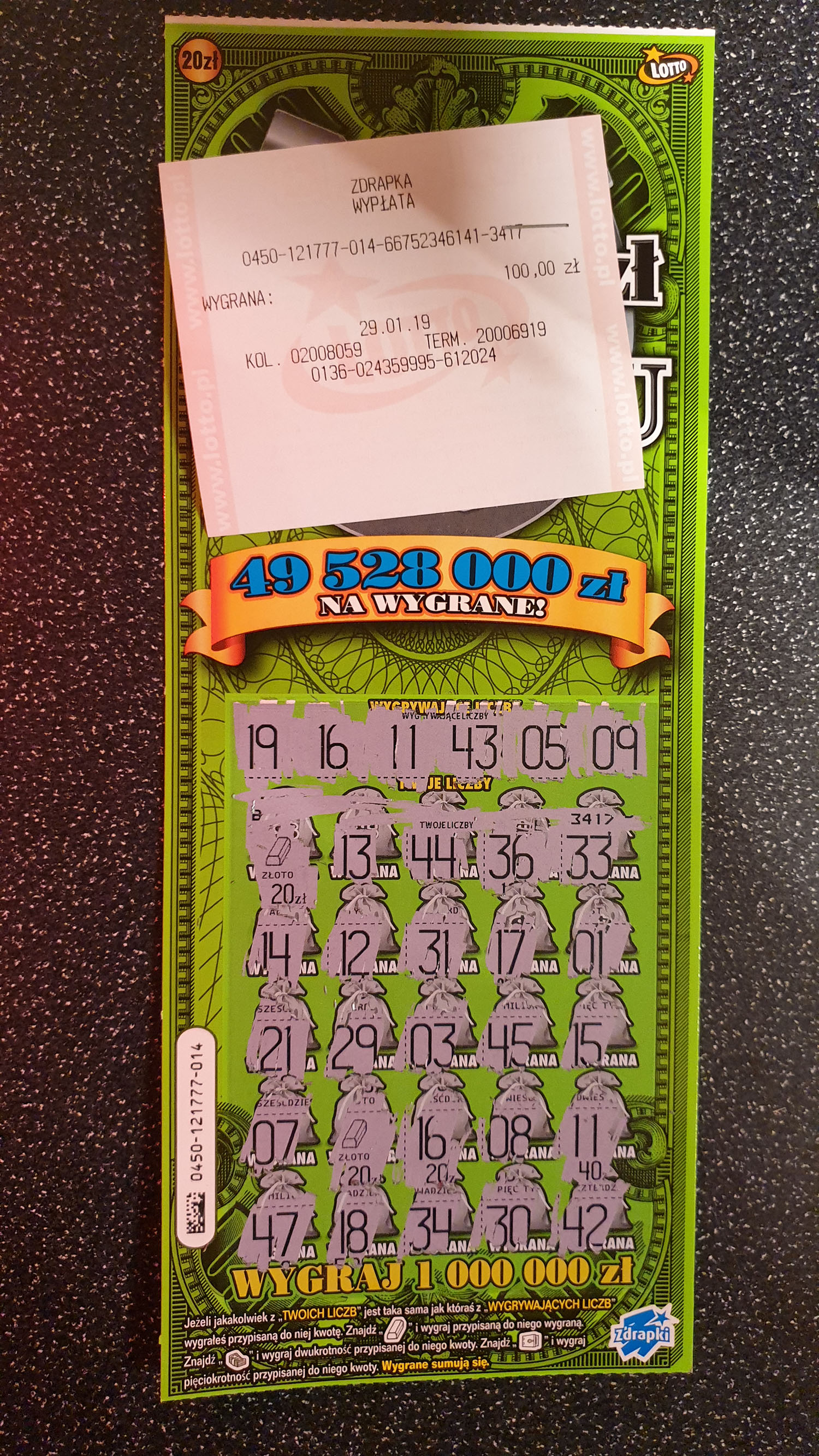 Po południu jedna sztuka ze zdrapkomatu i całkiem niespodziewanie siadło 60 zł w nr 008 pod liczbą 10 (wersja niebieska) ;)