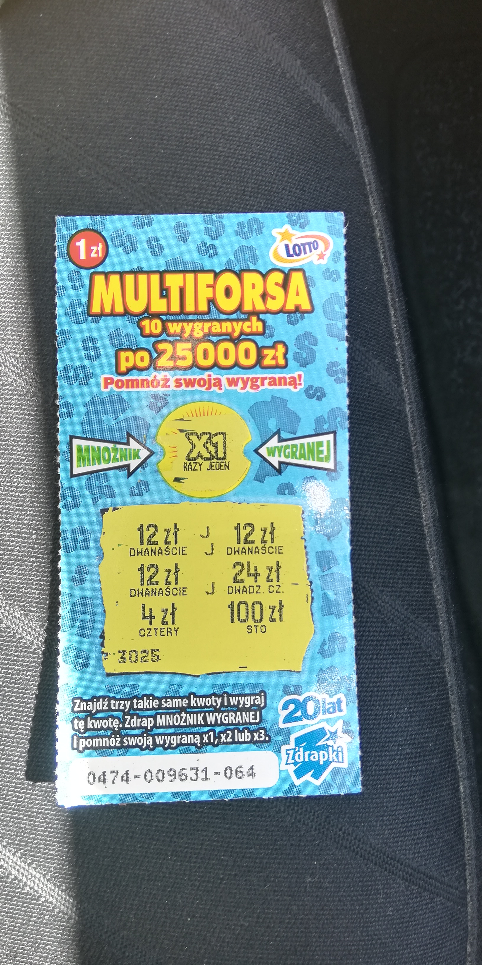 Na przekór zdrapce za 20zł w której nic nie miałem, wziąłem jeszcze dzisiaj 20x multiforsa i wyszedłem nawet na plus: