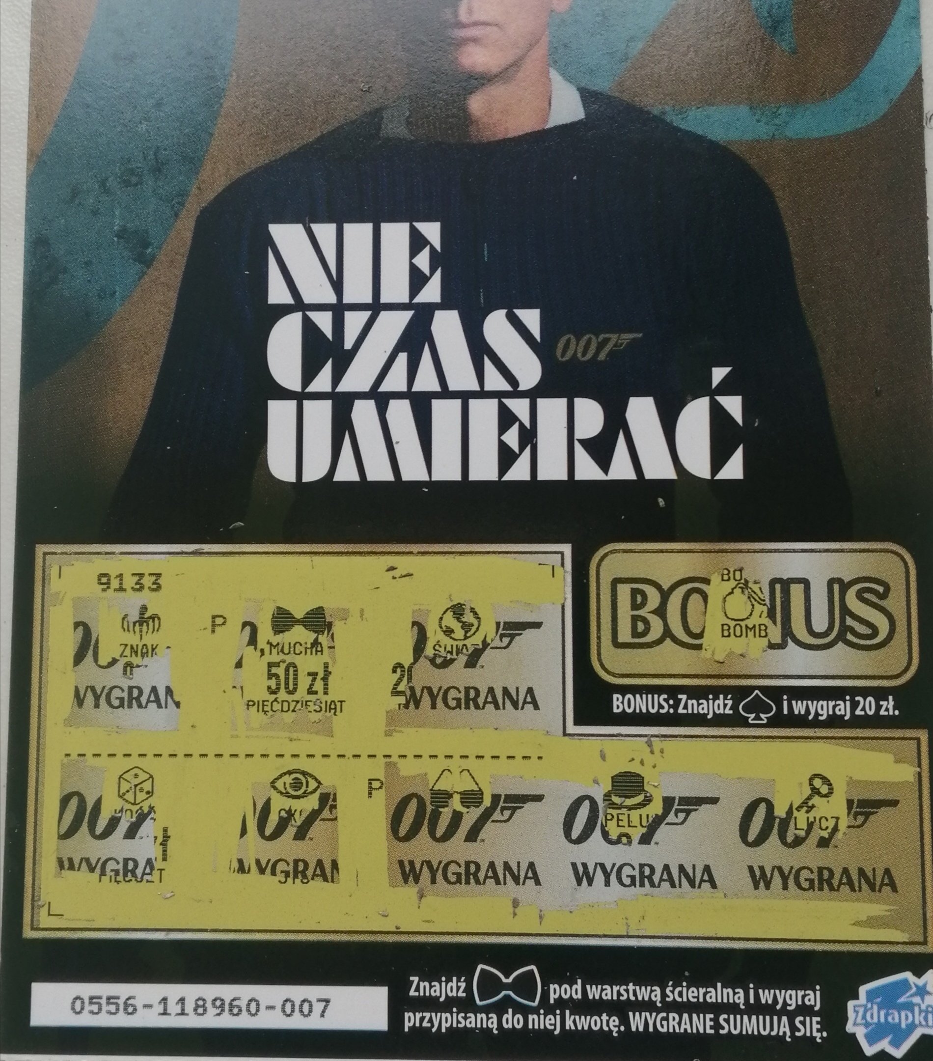 Z racji premiery Bonda, jak i głównych w grze, zainteresowałem się ostatnio tą zdrapką. Dziś wzięta 1 szt. (046) i wpadł bonus za 20 zł