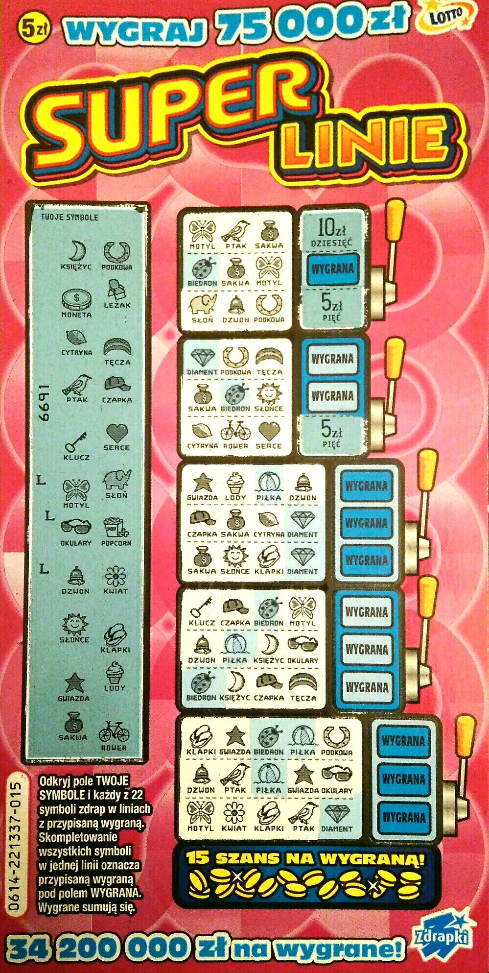 Nr paczki 223182 (ogólnie zakupione zostały 4 zdrapki za 30zł 2xsuper linie 1xExtra linie-pustak i 1xMaxi cash party-50złdało