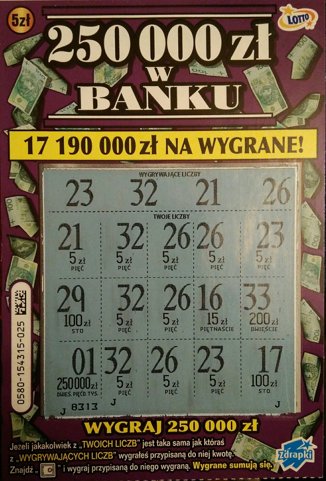 Dla mnie najlepsze za 5zł to EP, 250 w banku, kasa kasa, duży lotek i ewentualnie super linie i XL, reszta to już naprawdę szajs. Tak czy siak w najbliższym czasie u mnie będzie królował duży lotek, świetna jest ta zdrapka.