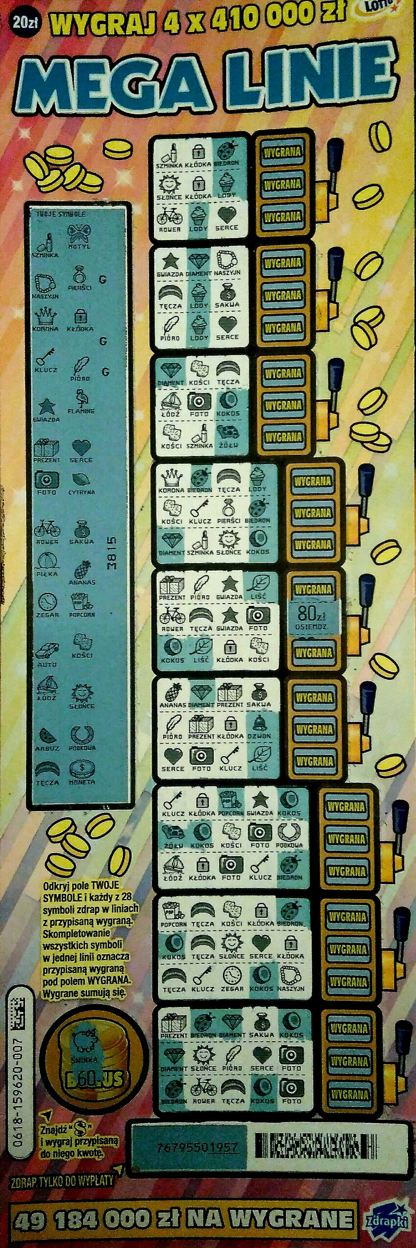 Ktoś może zna rozkład wygranych dla zdrapki Mega Linie??