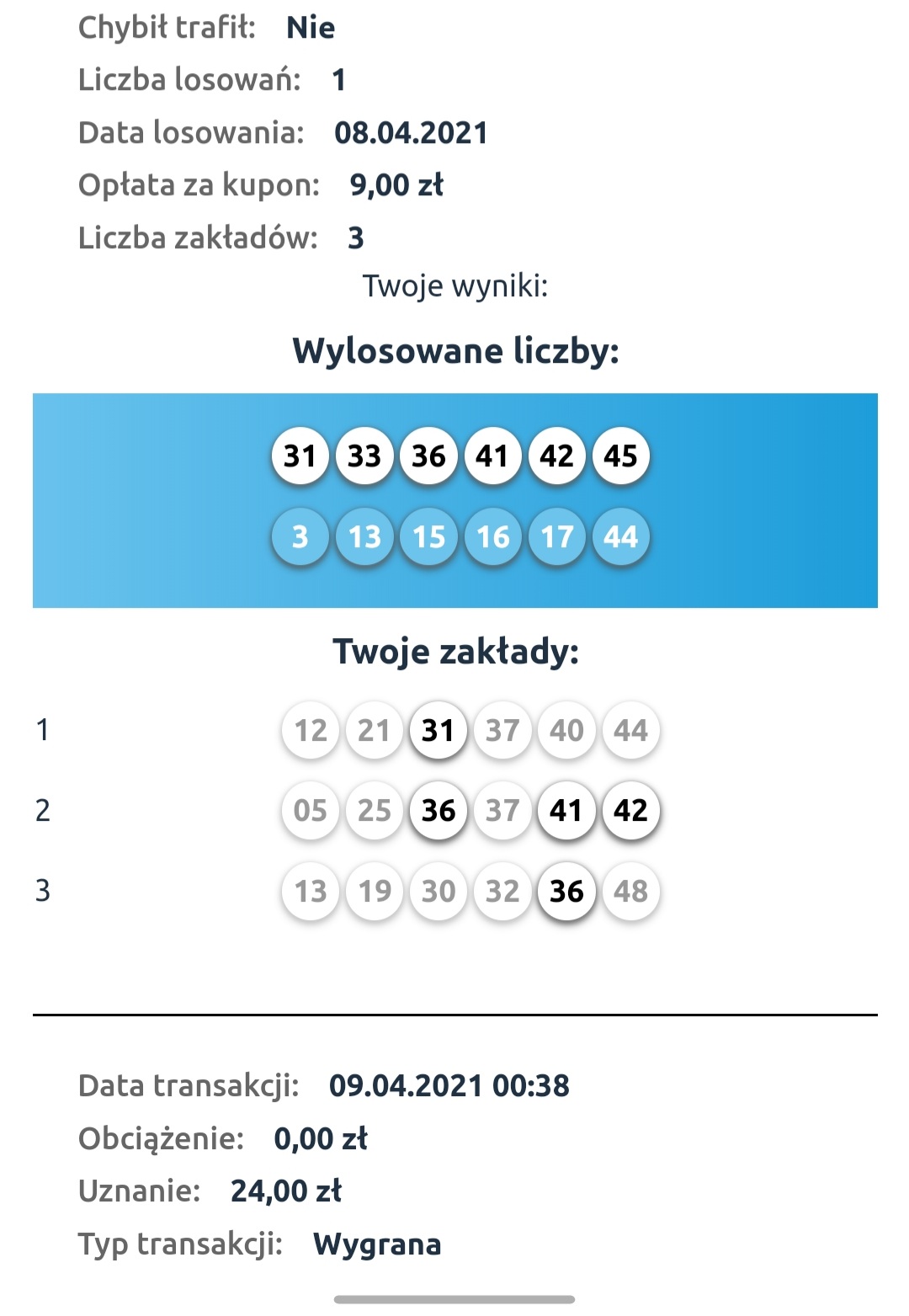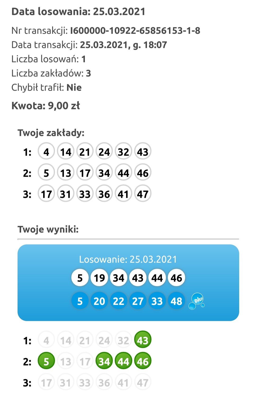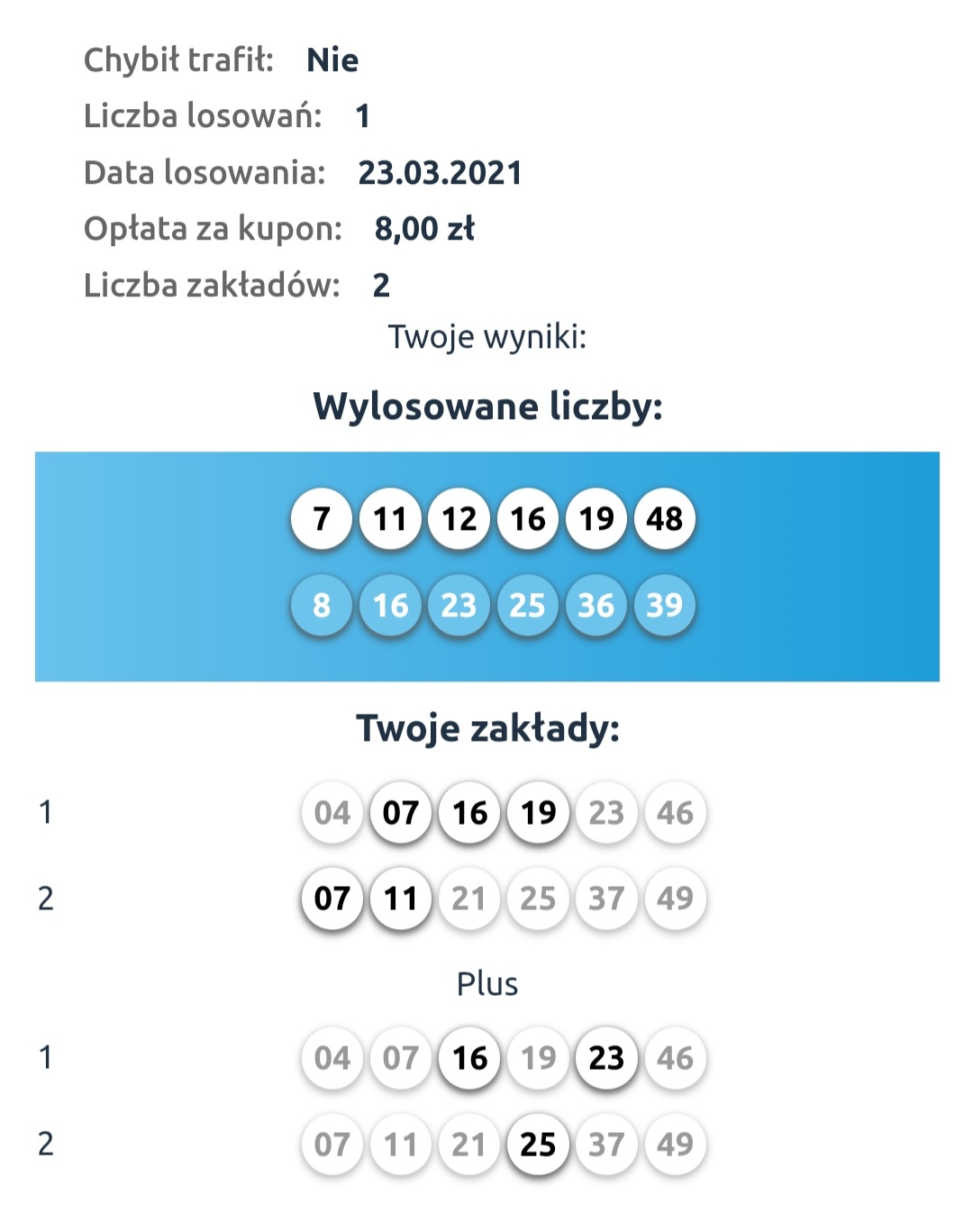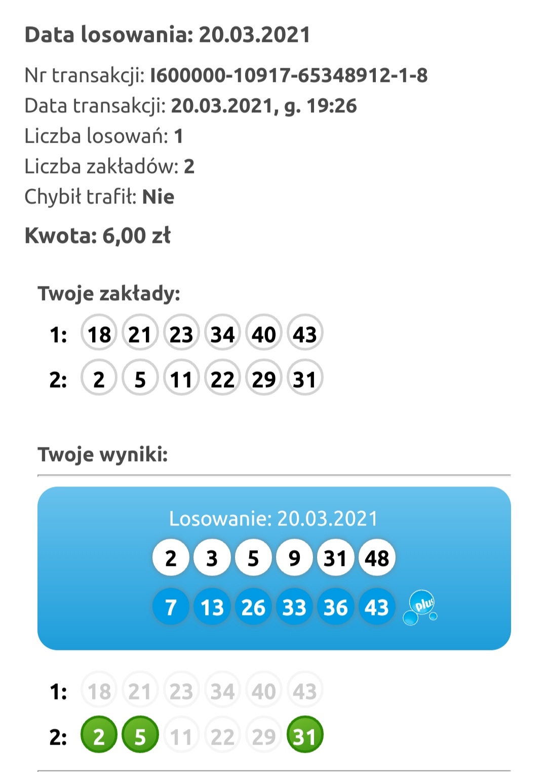 Z ostaniego losowania mam 3/6 w DL i 6/6 z laboratorium covidowego