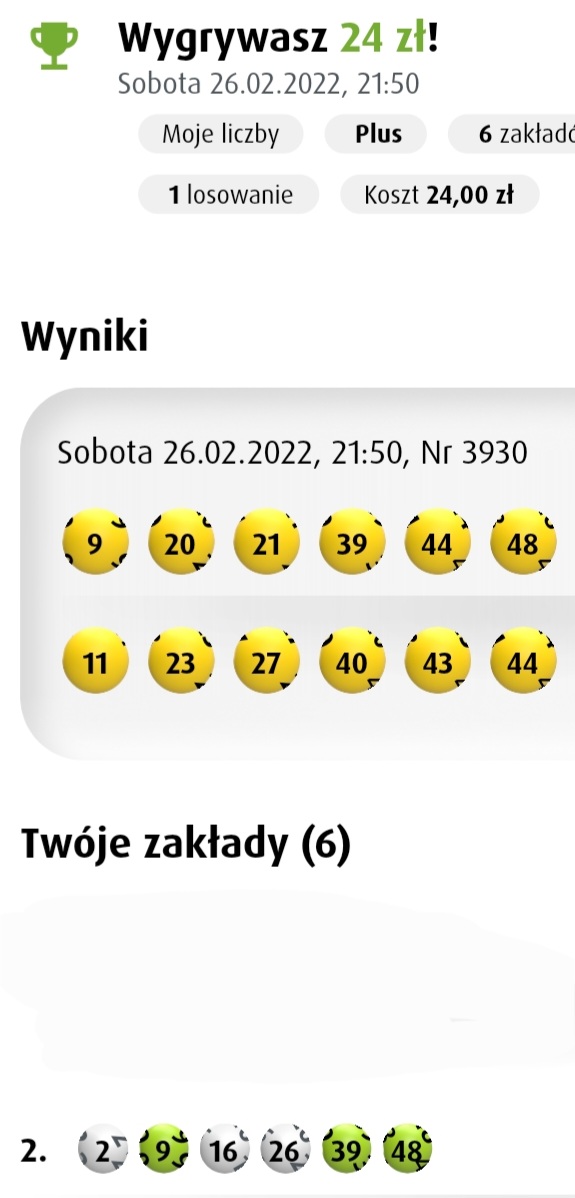 Hello, nikogo nie ganiłam, wkleiłam jedynie link do progówSollen pisze: 18 lut 2022, 20:21Skoro tak konsewentnie ganimy za nadrywanie regulaminu przy wstawianiu zdjęć wygranych w zdrapkach (vide Lucky 7 i wstawiona wygrana w wysokości 10 zł w zdrapce kosztującej 2 zł), to chyba warto by pomyśleć analogicznie nad czymś w zakresie gier liczbowych. Wstawiać dychę w lottoplusie kosztującym 4 złote, serio ?