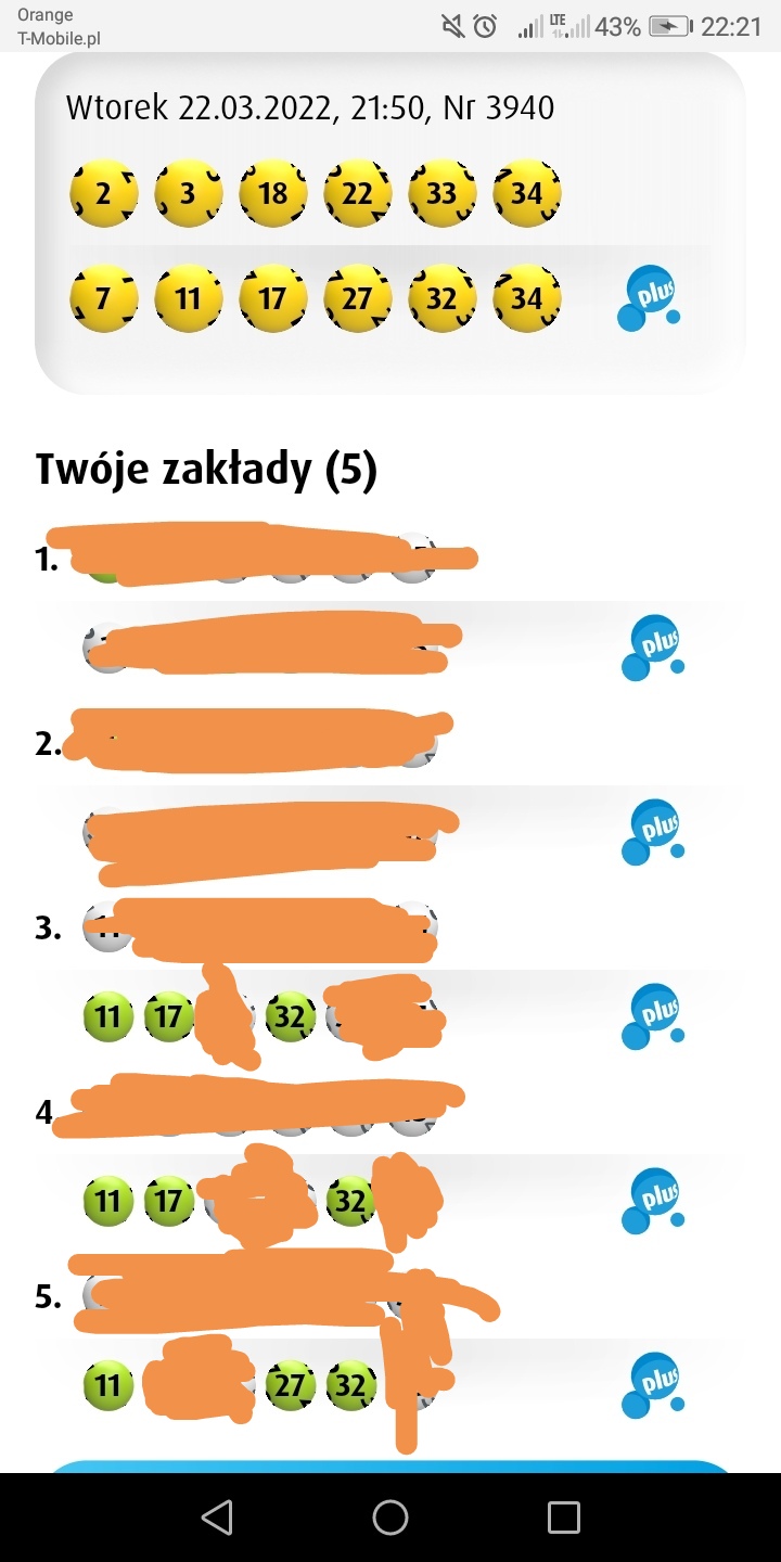 Dlatego teraz nie robię tak tylko gram dalej tym bo może się złożyć ze i z 4/5 może wejść z tego zważywszy ze Mini jest nie obliczalne a i w Lotto tez lubią czasami liczby zgrać te same