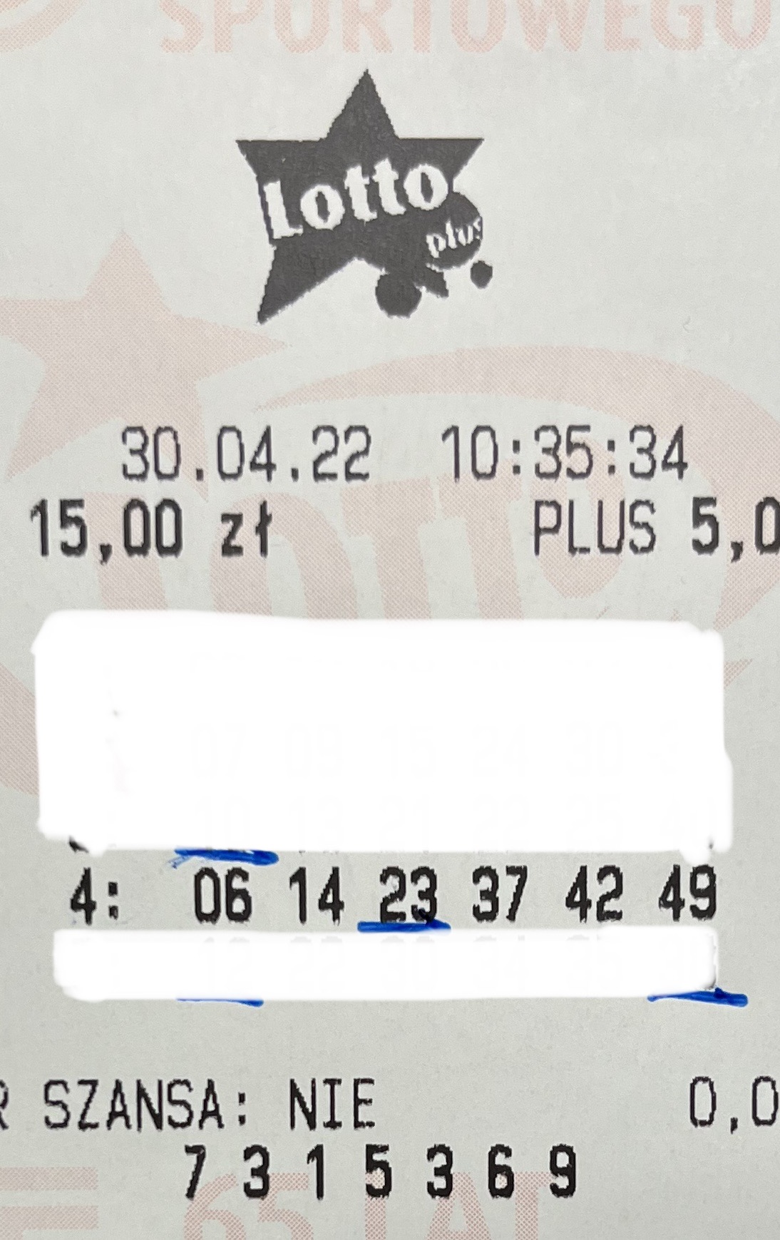 Pomysł utrudnienia w lotto totalnie Mi się nie podoba Jak dodadzą 1-7 kul to prawd. trafienia się zmniejszy 7 krotnie.