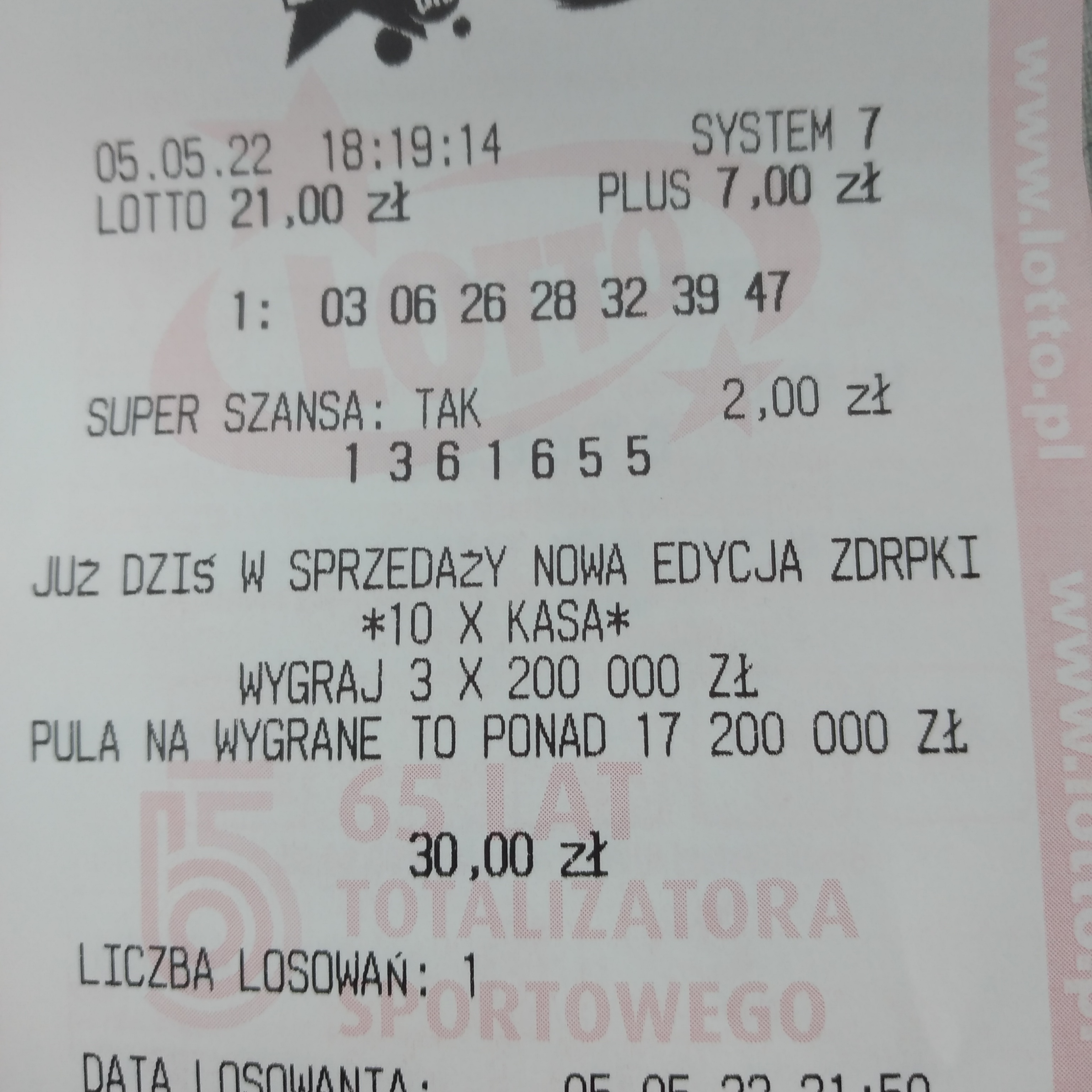Wiecie co dziś miałam ciekawą ankietę na temat Lotto i uwaga TS bierze pod uwagę podniesienie cen wszystkich gier Lotto. Ale w lotto chcą polecieć na grubo chociażby zakład 5 zł bez plusa zamiast gwarantowanych 2 mln byłoby 3 mln za 3 nie 24 zł a 30 zł oraz większe kumulację. Najlepszy jest drugi pomysł zakład też 5 zł bez plusa ale z bonus ball typujemy nadal 6 z 49 tylko jest losowana 7 kula i wygrywamy już po trafieniu 2 liczb i bonusowej liczby 20 zł za trójkę bez bonusowej liczby 25 zł. Trójka i bonus 50 zł . Za piątkę i bonus ok 47,5 tyś zł