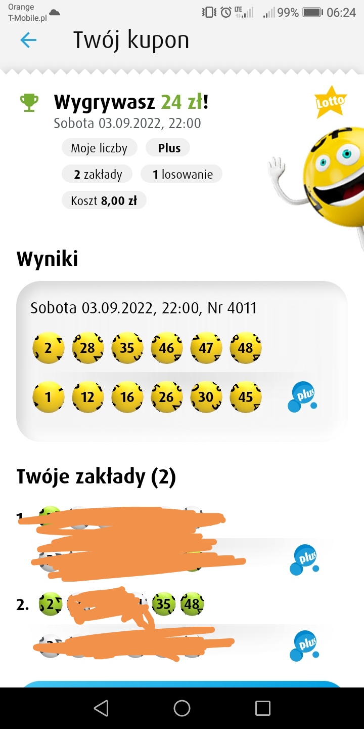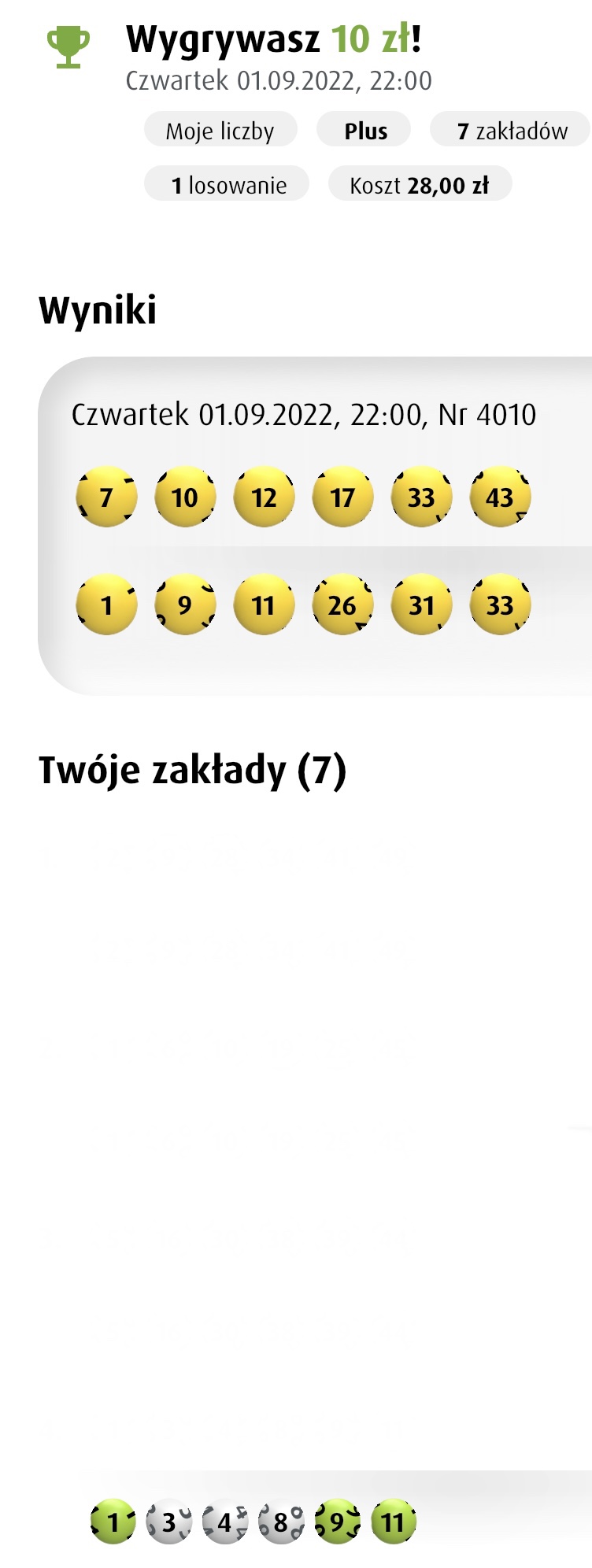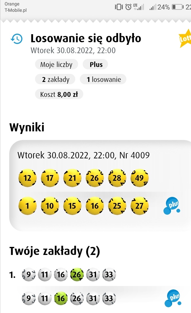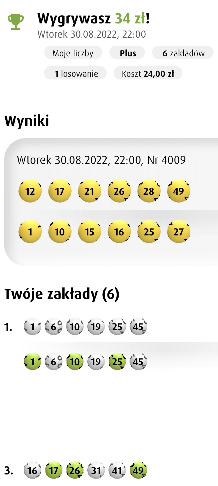 Kurcze to miałabyś 5/6 mi się nawet nigdy 4/6 nie trafiło. Ładnie te Twoje liczby weszły, ale chyba już możesz sobie je odpuścićFretkA pisze: 03 wrz 2022, 4:56 Jak puszczam swój zestaw to losu ją inne liczby, jak nie puszczam to losuja moje