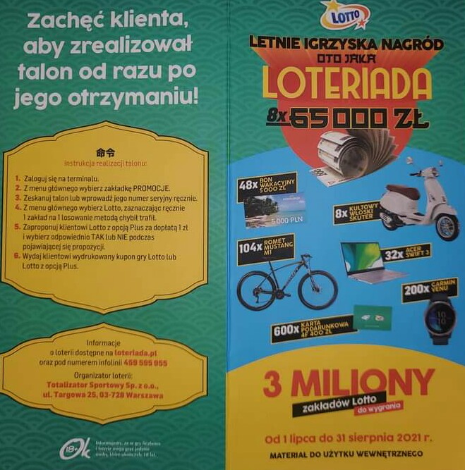 Loteriada trwa od 1 lipca do 31 sierpnia 2021r.