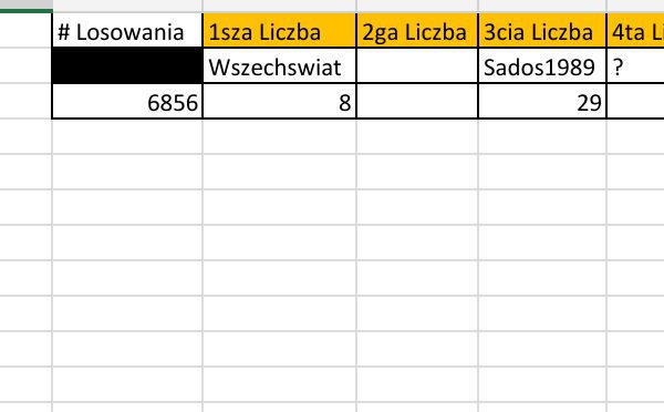 Typujemy liczby w kolejnosci. Podam po wczorajszym losowaniu.