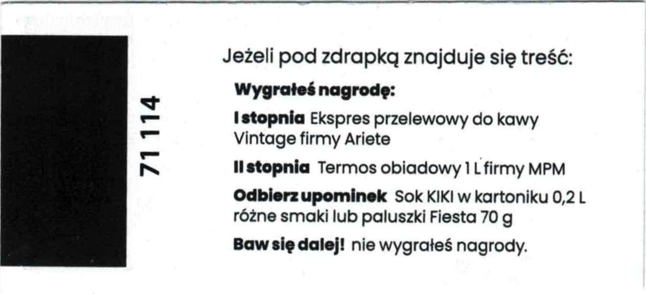 • uprawnia do pobrania / otrzymania jednej zdrapki loteryjnej (pula zdrapek ograniczona) w I części loterii, tj. w grze o nagrody natychmiastowe