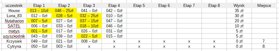 Wszyscy przechodzą do kolejnego etapu, każdy podaje 1 numer.