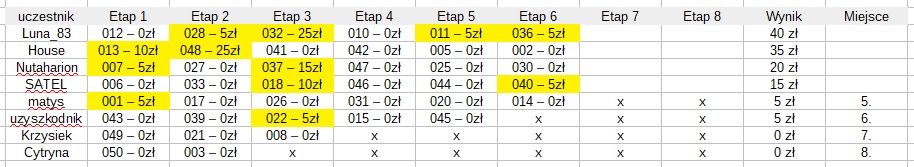 Na tym etapie grę kończy uzyszkodnik z wynikiem 5zł, pozostali podają 1 numer.