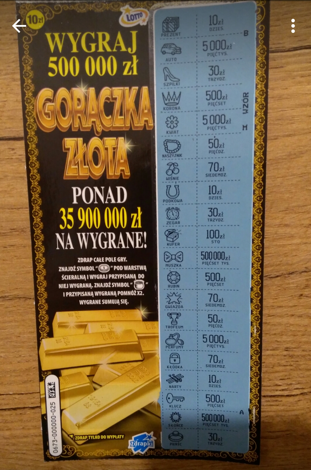 Będzie taki żeby Lotto wyszło dobrze na plus jak zwykle, po drugie znowu zdrapki większość z liczbami, szukać złota to mogła być sztabka a nie garnek z "kamieniami" zero inwencji twórczej, w Rajskiej zamiast pliku dać kokosa, w Green jakiś zielony liść