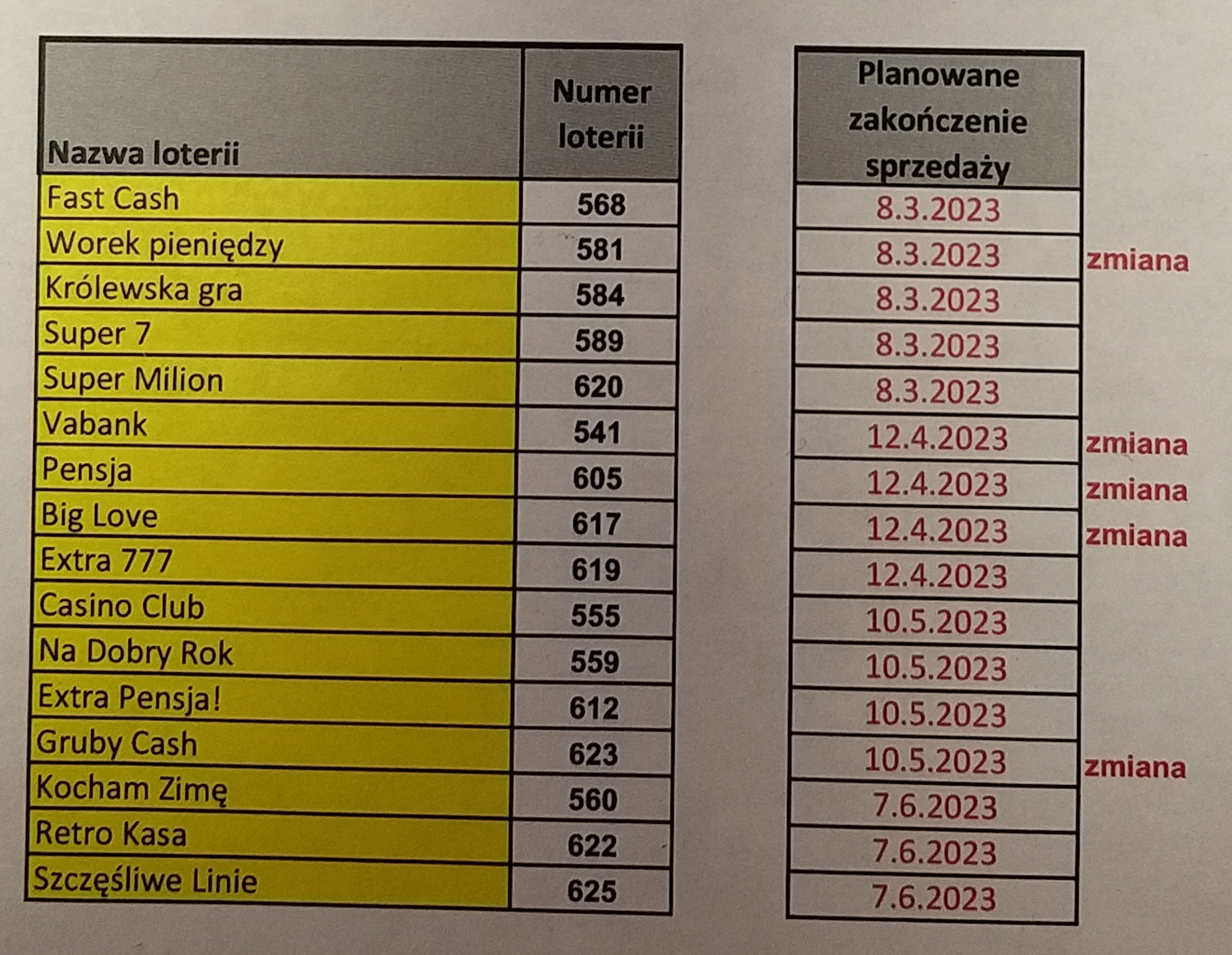 Re: Rozpoczęcie/zakończenie sprzedaży zdrapek [Przybyło - ubyło]