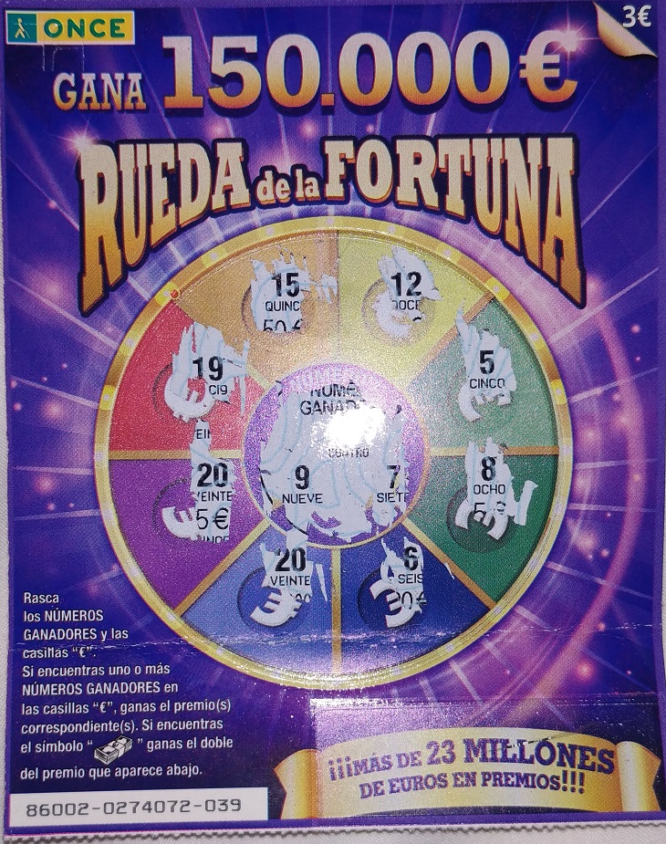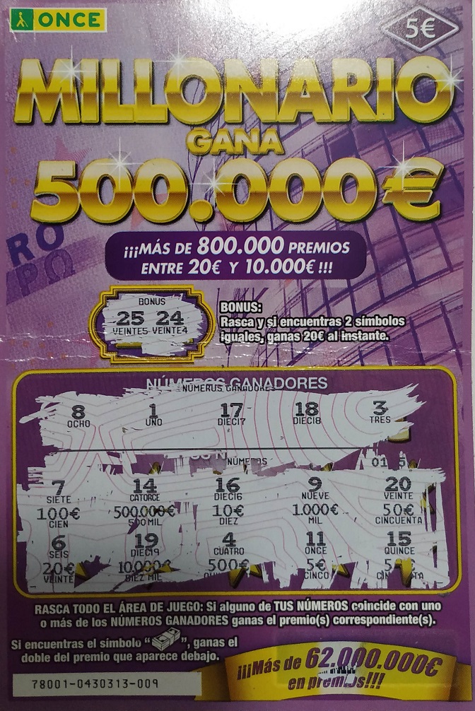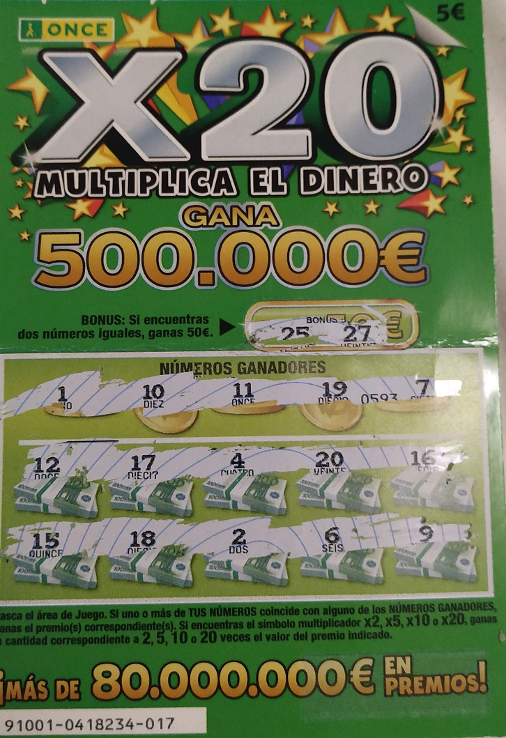 Koniec łowów w Hiszpanii. Nic ciekawszego niż to 100€ w zdrapce za 1€ nie udało się wygrać. Na drugim miejscu jest 20€ w zdrapce "X20" za 5€.
