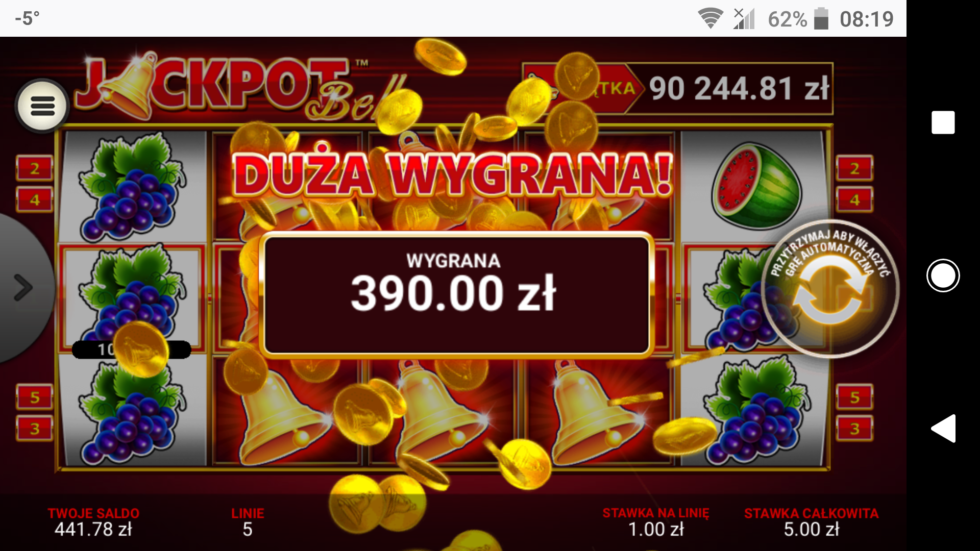 Tak, padają jackpoty. Ostatnio za 25 zł padła wygrana ponad 500 tys na grze Jackpot Bell