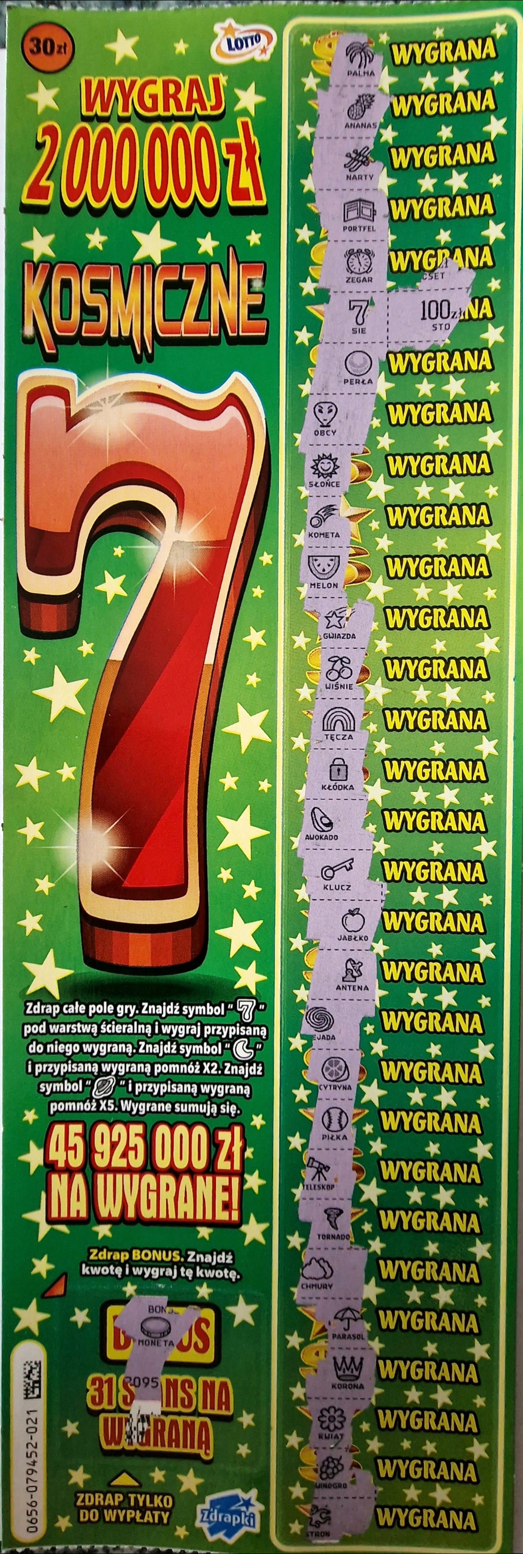 Jakoś mnie naciągło na zakup tej zdrapy choć ogólnie bym nie wziął ze wzgledu na kilkusekundowe drapanie, wolę za tą kasę WK, czy dla zabawy Brylanty bo dlugo schodzi i jakimś cudem trafiony Stefan