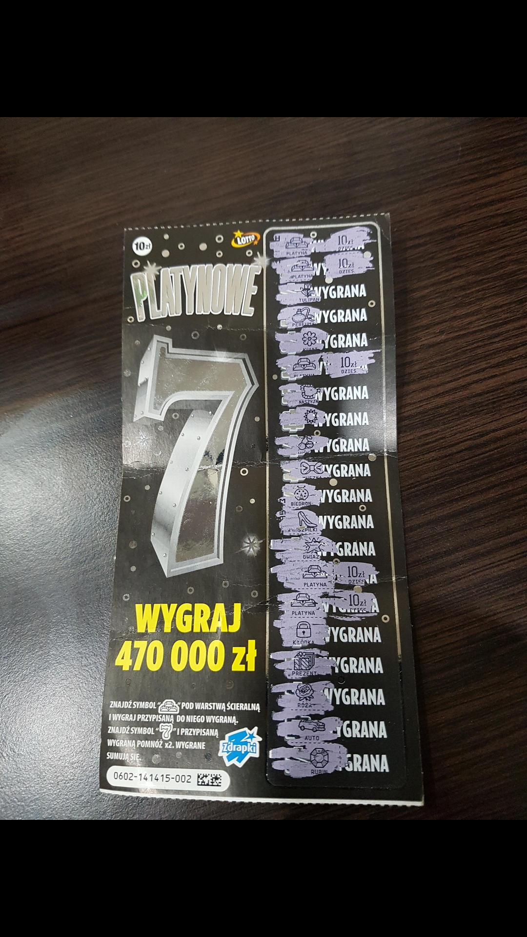 Drapie się w miarę, ale wiadomo że najlepiej gdyby w ogóle na warstwie ścieralnej nie było tego brokatu (jak w Jubilotce), wystarczy że wielka 7 się błyszczy. Big 7, bonus 7, platynowe 7 to są wszystko te same zdrapki i zwrot 130/140/150, losowe od 170zł.