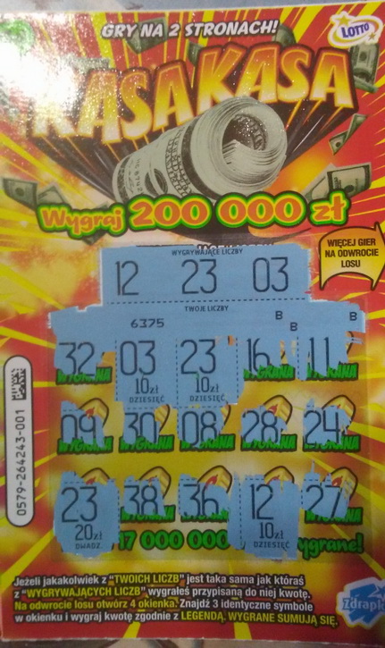 Przypomniałem sobie dziś o tej zdrapce i wziąłem 1 szt. W numerze 020 kryło się 20 zł
