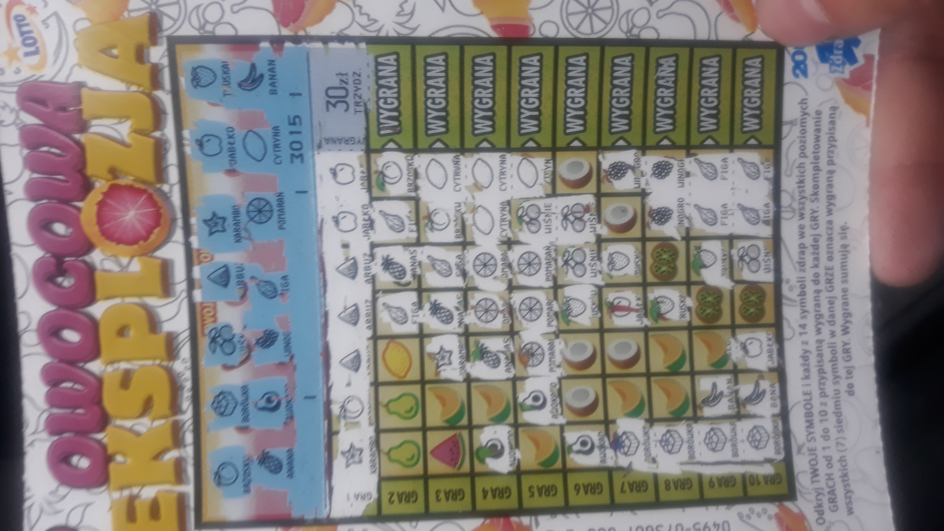 Dzięki za wyjaśnieniegrzybek pisze: ↑14 wrz 2019, 21:18Ja bym tu się niczego nie doszukiwał, aczkolwiek było już 5 głównych na pomarańczowej i ten kolor bym cisnął i być może jest najbardziej sprzyjający w tej edycji. Kiedyś jak było więcej zdrapek po kilka kolorów w paczce to często całą edycja miała jeden wybrany który często wygrywał a w kolejnych edycjach przeskakiwał na inny np. w tutti frutti (2 edycja) ciągle wygrywałem na fioletowych jagódkach, w Zodiaku 246 na starym forum był pogrom wygranych w byku i to przeważnie 50-tki w bonusie, bodajże aniołek czy diabełek który miał wersję kobiecą i męską też częściej wygrywał jeden wizerunek, albo ostatnia edycja szczęśliwej liczby gdzie najszczęśliwsza była 4.