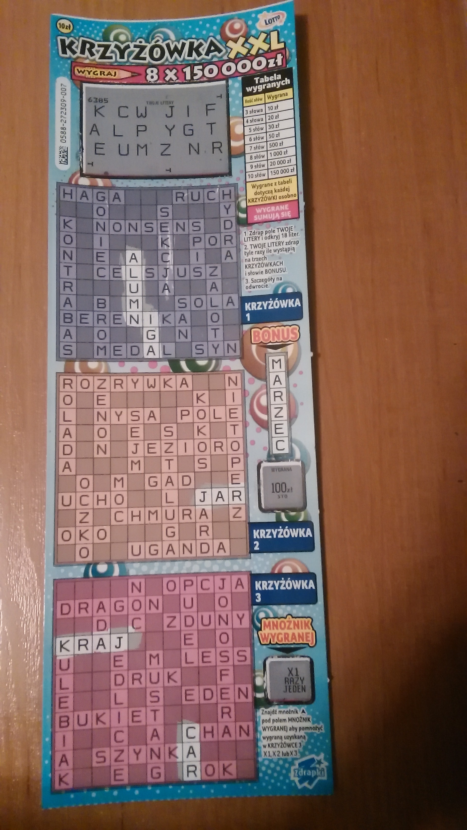 ja w tej edycji najwyżej 100 pln wygrałem - kombinacja 3 krzyzówek i bonusa
