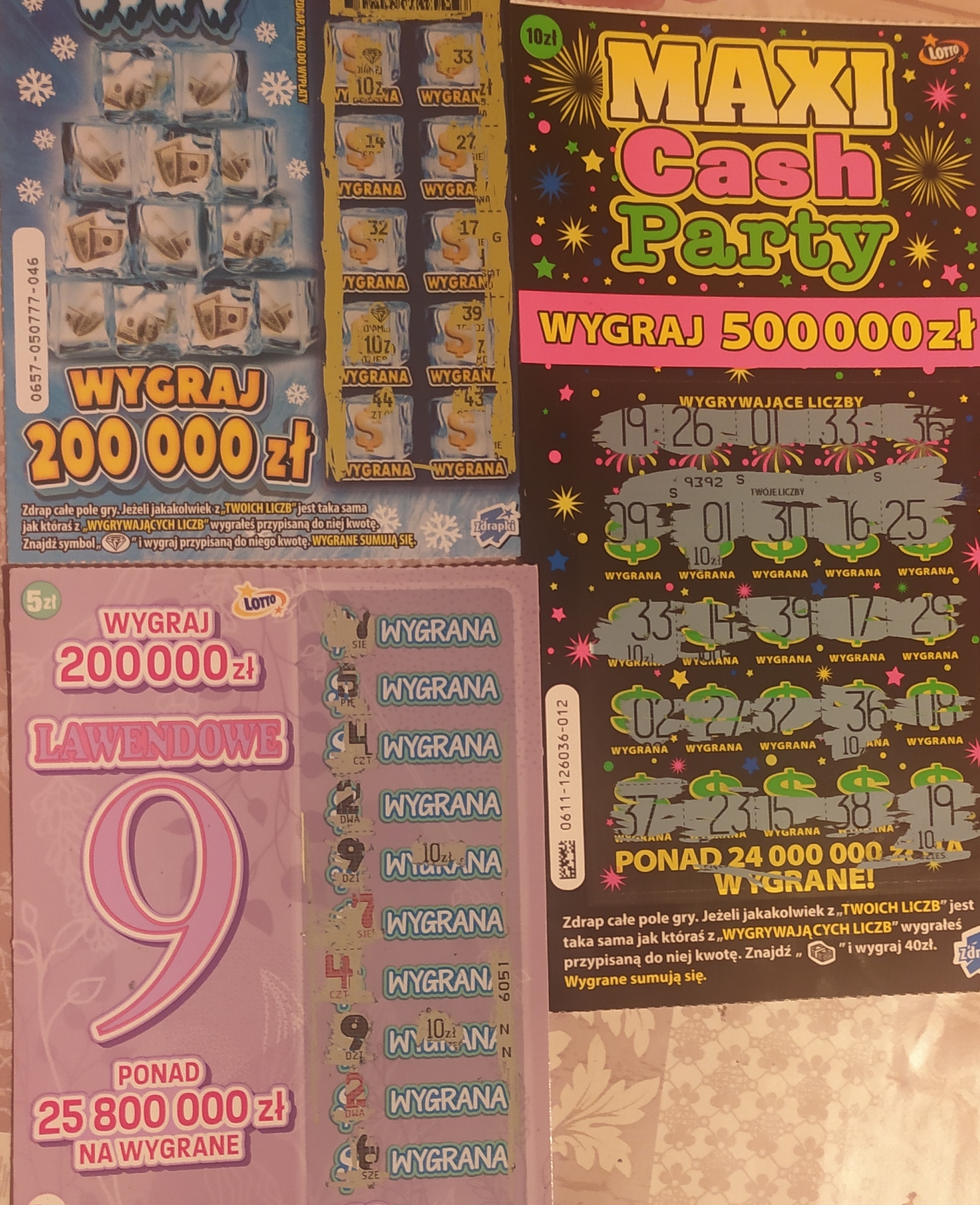 U mnie zdrapa jak zawsze nie zawodzi. Wzięte 2 z jednej kolektury i 2 z drugiej. W obu pustak i stówa.
