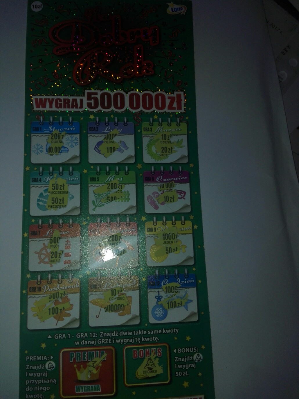 Poszedłem wypłacić do spożywczaka wygrane i z losów po 10 był tylko rok i g.gortuna. Kupiłem pierwszą z góry i 100. Kupilem tez s.linie-tu nic.