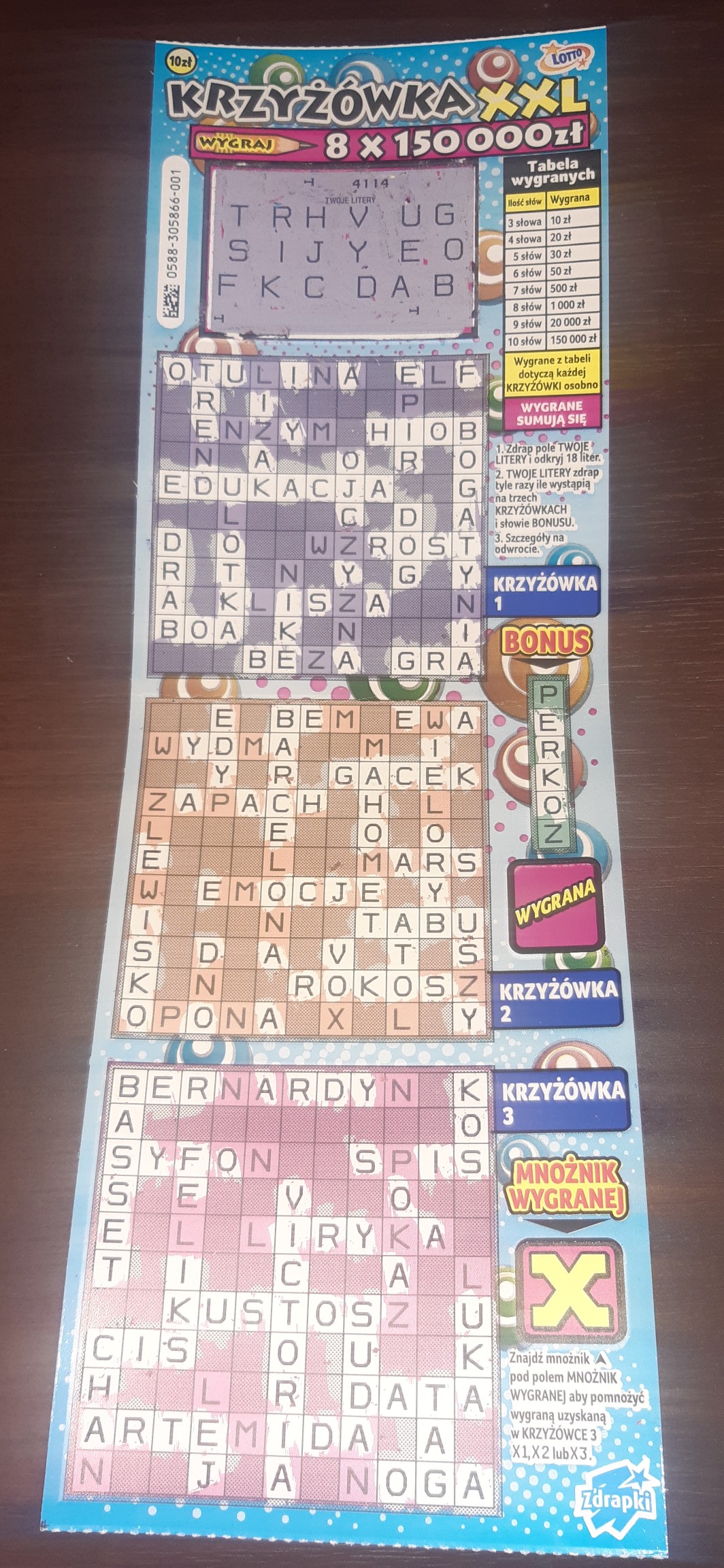 . Jest to najwyższa wygrana w tej edycji. Zauważyłem , ze bardzo często coś mi wpada w zdrapkach pod numerem 1.