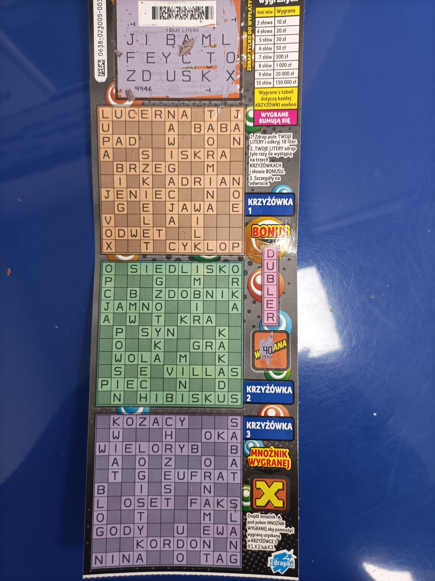 Wałkowalismy temat literek wiele razy , a zdrapkę zawsze sprawdzam albo u kolektora po numerach albo pod czytnikiem.